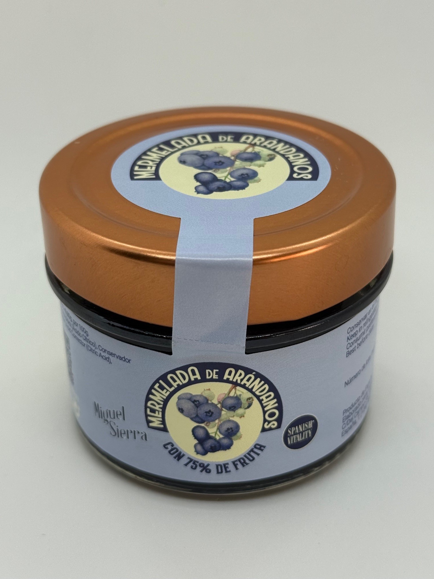| Arándanos, azúcar, espesante (pectina), corrector de acidez (ácido cítrico), conservador (sorbato potásico) |